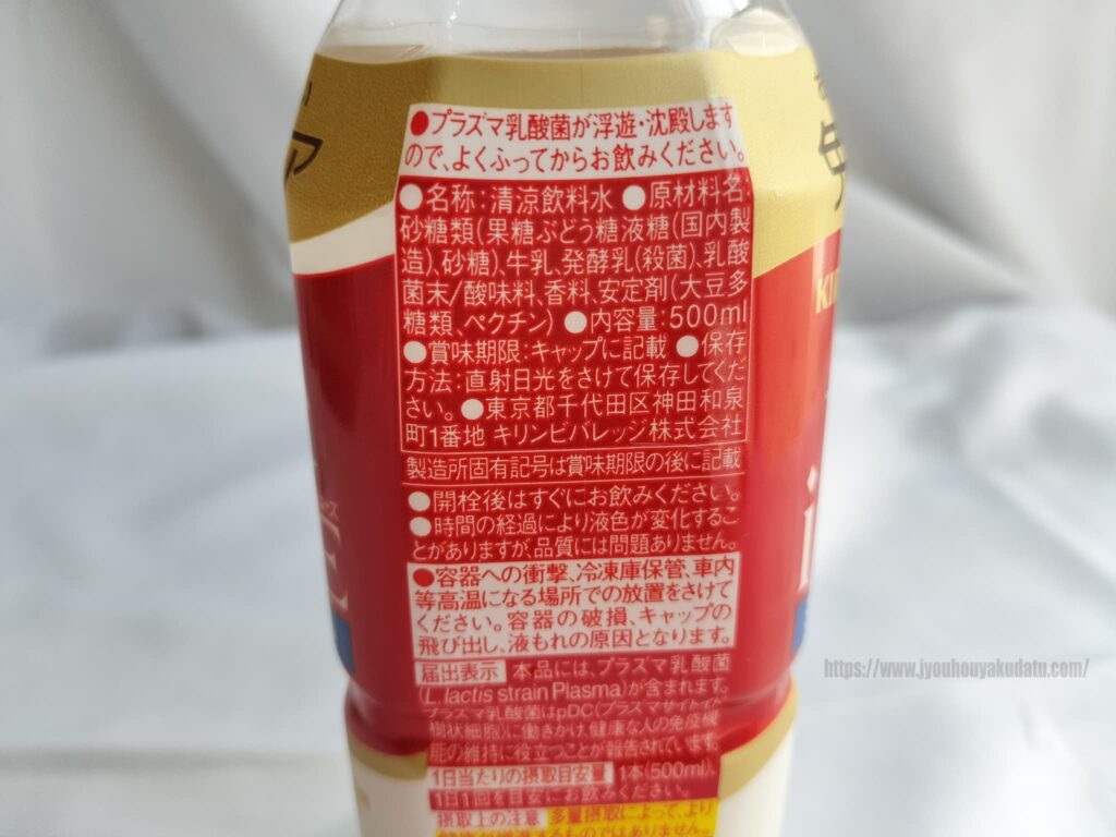 プラズマ乳酸菌が入ってるので、飲む前に良く振ってから飲むのが大事らしい。