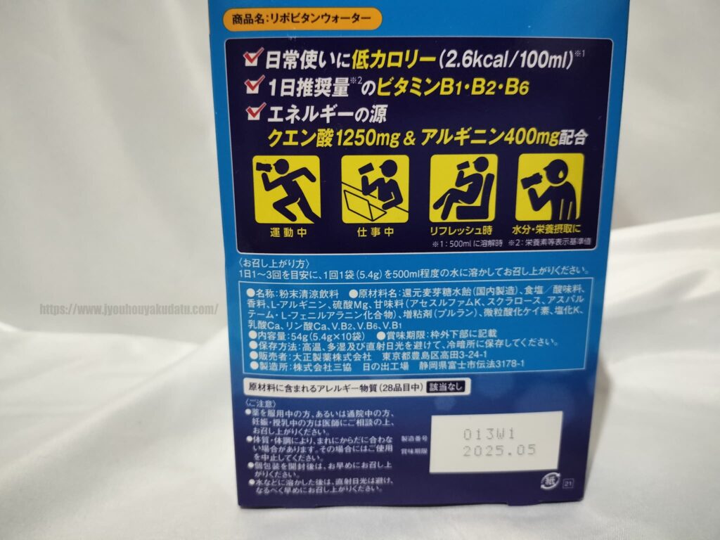リポビタンウォーターはクエン酸とアルギニン配合!低カロリーで飲みやすいです