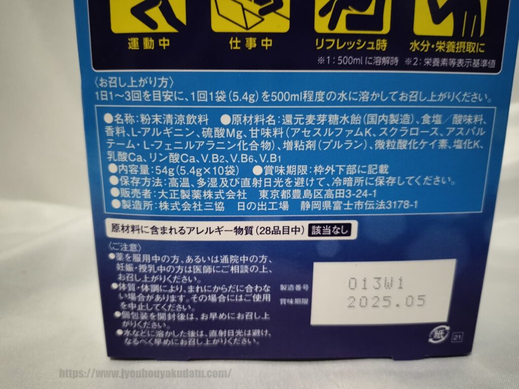 パッケージの裏面を見ると、低カロリー・ビタミン・クエン酸&アルギニンが特徴だと書かれています。