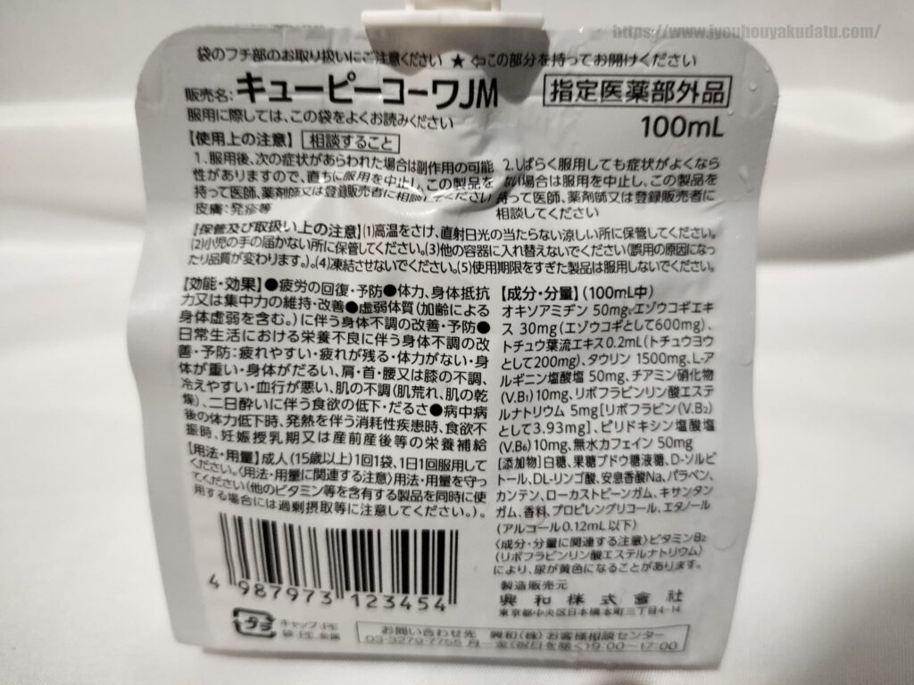 指定医薬部外品のゼリー飲料なためか、カフェインが100ml中に50㎎とかなり入っているので、寝る前とかに飲まないように注意した方がいいです。